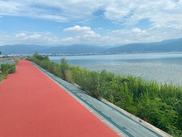 翌日午前中に諏訪湖の周りを走った。健康的。