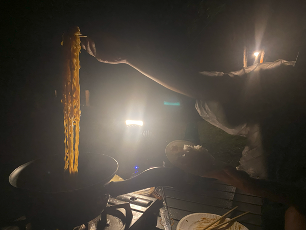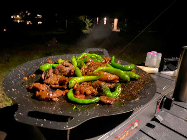 完全にととのい切った身体で本日の拠点へ戻り、夜飯の準備。