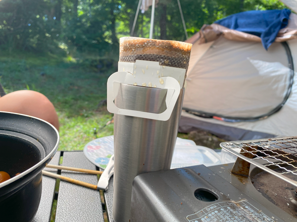 暑すぎて焚火なんてと思っていたけれど、前方で素敵なソロキャンをしているおじ様がイカした焚火をしていて羨ましかった。