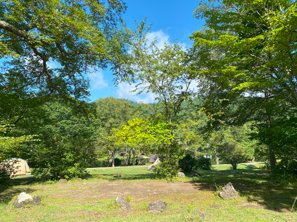 我々はリバーサイトの奥の方、池を遠目に眺められる位置に決定。